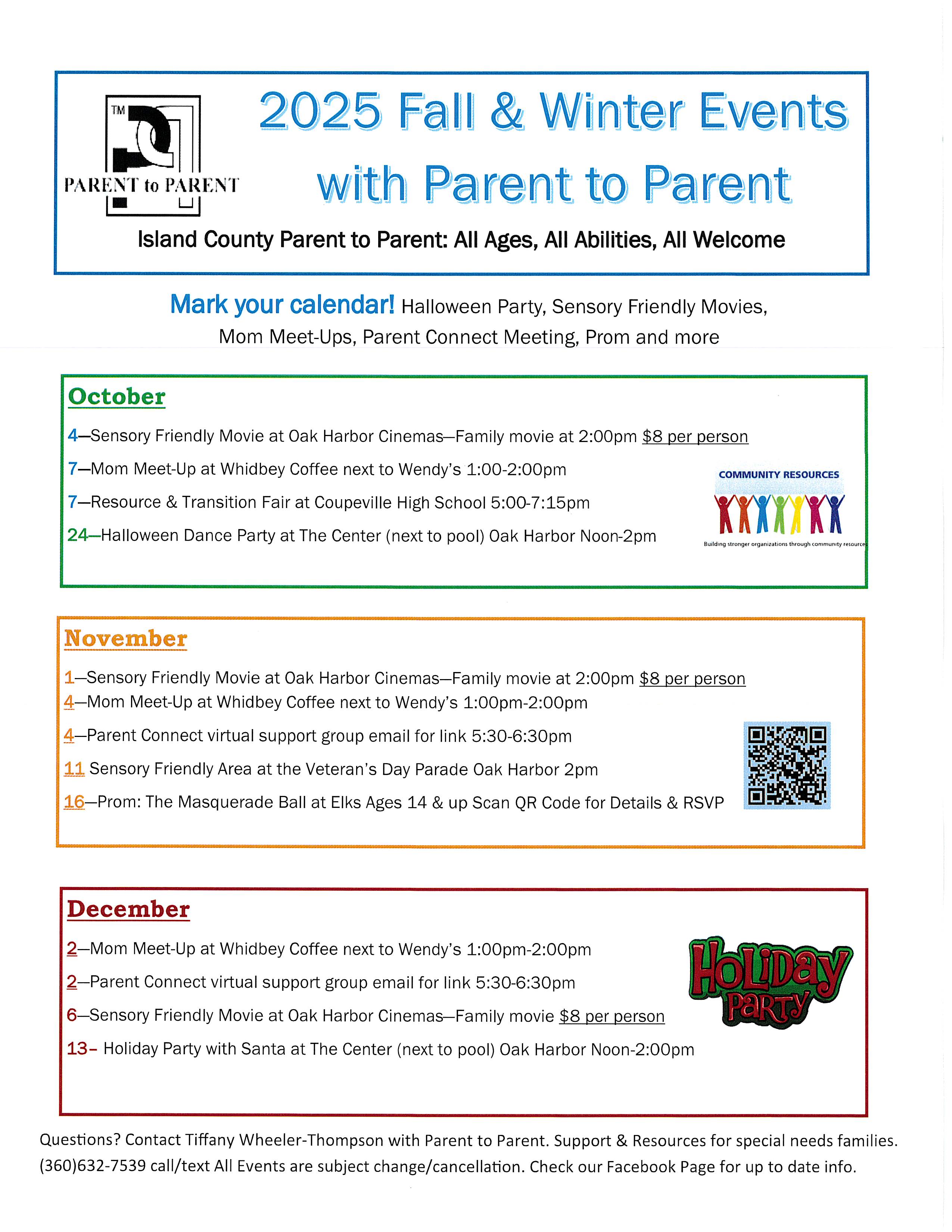 For a complete list of events, training, information and resource guides, check the Island County Parent to Parent website.