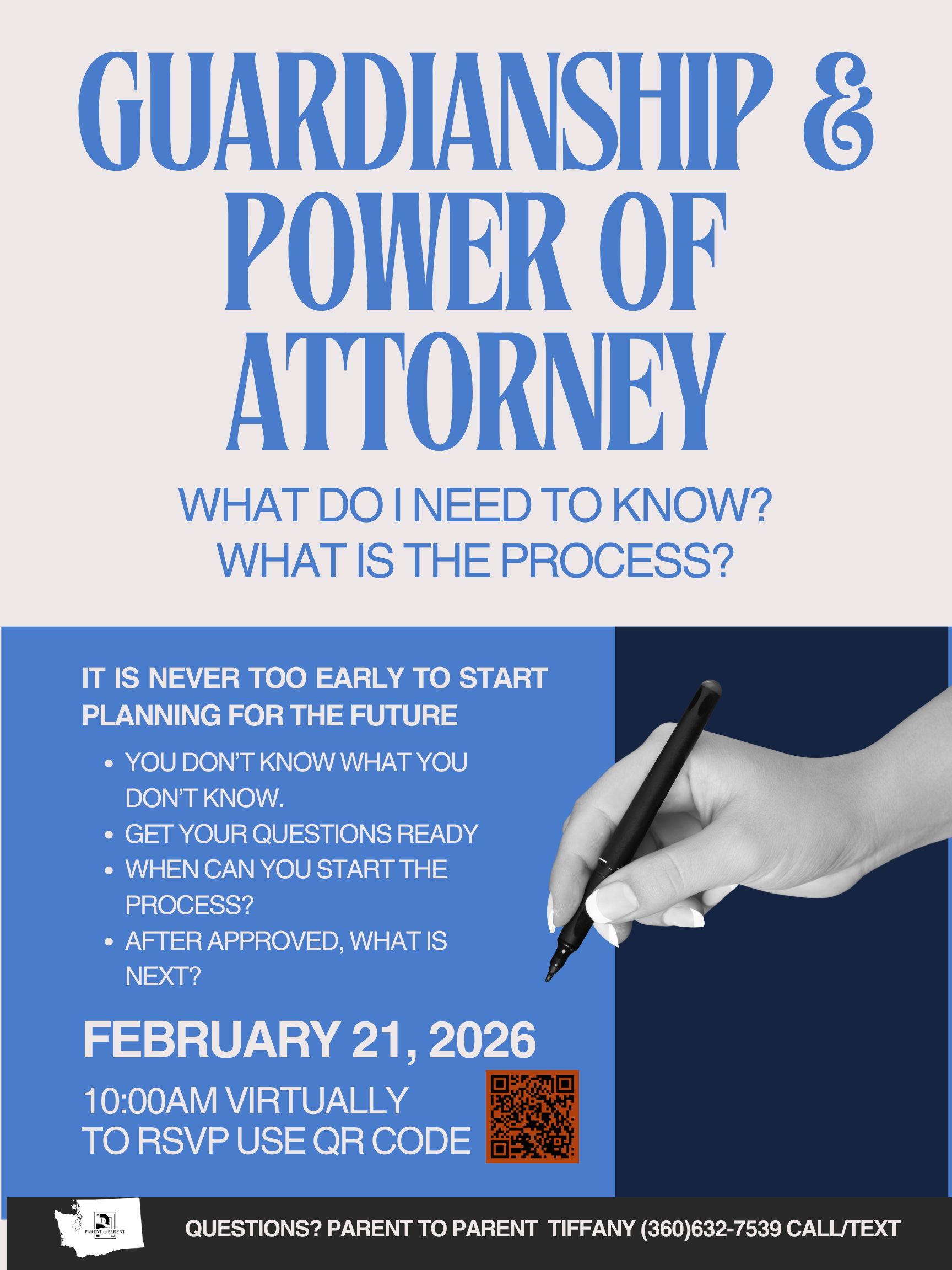 Parent to Parent Information and Education CoordinatorPhone: 360-632-7539 (also text)